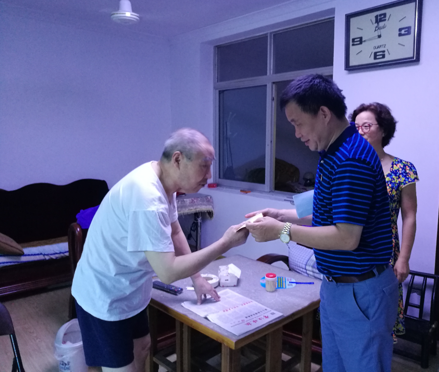 6月28日,区财政局机关党委书记鲍明勇、党委委员高湘明率领部分党员开展“七一”慰问困难党员活动,为他们送去了温暖和关怀。