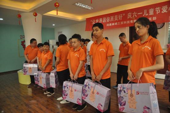 为了迎接六一儿童节的到来,5月29日,湖南伟晴工贸科技有限公司党支部的党员志愿者来到武陵区西城阳光家园,举办“让世界因你而美丽”公益活动,共同关爱家园的特殊孩子,赠送节日礼物。